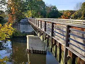 ![]() View along the side of the Southern New England Trunkline Trail bridge over the Blackstone River | |