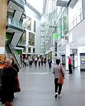 The atrium in the main hospital building (Brunel) gives access to reception, outpatient departments, coffee shops, and a small supermarket