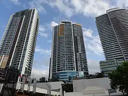 Southport Central is an 18,130 m² mixed Use, multi-purpose development at the corner of Scarborough and Lawson Streets in Southport, Queensland, Australia. It comprises three towers with integrated shopping and commercial precincts with a total value of $700 million.[1] The towers are constructed with concrete in a modern style.[2] The building was developed by Raptis Group. The architectural work was conducted by Archidiom Design.