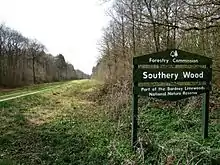 Southrey wood entrance; the sign reads Southery Wood
