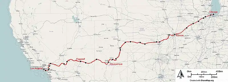 | Termini | Chicago, Illinois Los Angeles, California | |||||||||||||||||||||||||||||||||||||||||||||||||||||||||||||||||||||||||||||||||||||||||||||||||||||||||||||||||||||||||||||||||||||||||||||||||||||||||||||||||||||||||||||||||||||||||||||||||||||||||||||||||||||||||||||||||||||||||||||||||||||||||||||||||||||||||||||||||||||||||||||||||||||||||||||||||||||||||||||||||||||||||||||||||||||||||||||||||||||||||||||||||||||||||||||||||||||||||||||||||||||||||||||||||||||||||||||||||||||||||||||||||||||||||||||||||||||||||||||