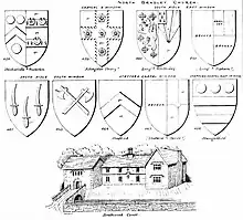 The earliest record of a manor house of Southwick dates to 1274 when two carucates (about 240 acres) of land at Southwick, in what was then the parish of North Bradley, belonged to one William de Greynville. Twenty years later, in 1294, records show a legal agreement between the Rector of North Bradley and William's son Adam de Greynville, who had built a private chapel in the grounds of his house Southwick Court, apparently dedicated to John the Baptist. The Rector of Bradley agreed to allow services to take place in this chapel,[2] on the condition that only members of the Greynville family and "strangers arriving unexpectedly" could attend.[3] The family was also required to provide the Rector "from time to time" with "fit chaplains" who would "do fealty to him". Later, in 1369, Robert Wyvil, Bishop of Salisbury, granted a license for mass to be said in the chapel.