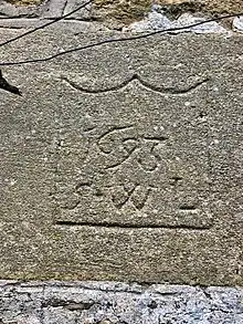 For much of the period from the late 17th century until the mid-19th century, Southwick Court was leased to tenants. The MP and political pamphleteer John Trenchard, co-author of The Independent Whig, lived in the house until his death in 1723.[10] In 1733, the manor was being let to one Richard Pinnock for an annual rent of £126.[11] In 1788, further alterations were made to the house and a new set of initials inscribed on the same wing upon which Walter Bush had left his mark more than two centuries before. These carvings, however, have survived the weather less well than their predecessors, making the letters indistinct. In 1820, the occupier was James Chapman with his family.[12]