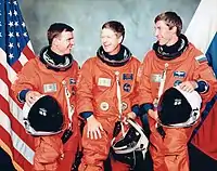 ![]() (L-R) Gidzenko, Shepherd and Krikalev Soyuz programme (Crewed missions) | |