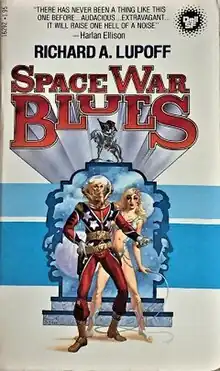 Space War Blues is a science fiction novel by American writer Richard A. Lupoff. It is a fixup of several previously published pieces, the longest of which, "With The Bentfin Boomer Boys On Little Old New Alabama" (hereinafter “WTBBB”), first appeared in Harlan Ellison's 1972 anthology Again, Dangerous Visions. In his introduction to the novella, Ellison wrote: "It is so audacious and extravagant a story that it becomes one of the three or four really indispensable reasons for doing this book. Frankly, had no other story than this one been written for A,DV — the book would be worth reading."[1] The story appeared on the final Nebula Award ballot for Best Novella of the Year.