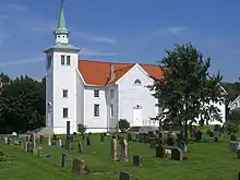 Spangereid Church (Norwegian: Spangereid kirke) is a parish church of the Church of Norway in Lindesnes Municipality in Agder county, Norway. It is located in the village of Høllen. It is one of the churches for the Lindesnes parish which is part of the Lister og Mandal prosti (deanery) in the Diocese of Agder og Telemark. The white, stone church was built in a Romanesque cruciform design in the year 1140 using plans drawn up by an unknown architect. The church seats about 300 people.[1][2]