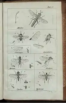 - ↑ Meigen JW (1830). Systematische Beschreibung der bekannten europäischen zweiflügeligen Insekten. (Volume 6) (PDF) (in German). Schulz-Wundermann. Archived from the original (PDF) on 2012-02-09.