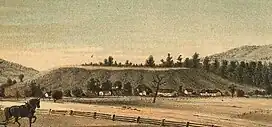 ![]() Spanish Hill from the south, as depicted in an 1881 lithograph | |