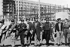 The same day Palmiro Togliatti, at the time in hiding in Valencia and acting as the highest PCE authority in Spain, issued a response. He declared that given CND pledged not to embark on reprisals, PCE was prepared to co-operate; some grandiloquent phrases followed, pointing e.g. to “example of sacrifice, heroism and discipline” to be given to the fatherland.[57] It was delivered to the PCE Madrid executive by Togliatti's wife on the evening the same day.[58] The Communist resistance ceased and the battle for Madrid was over. Most resolute commanders, like Ascanio or Fernández, were already detained by the Casadistas; others, like Barceló, Bueno or Ortega, would be apprehended the following day or soon afterwards.