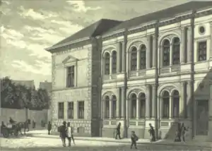 The savings bank purchased a building at the corner of Niels Hemmingsens Gade (No. 24) and Løvstræde (No. 7) in 1864. The building was in 1866-1868 adapted for use as new bank headquarters by architects Vilhelm Klein (1835-1913) and Hans Conrad Stilling (1815-1891). It was inaugurated on 18 November 1870. The building was by the same architects expanded Valkendorfsgade in In 1872-1873 and again in 1879. Another refurbishment of the building took place in 1911-1913 under supervision of the architects Albert Oppenheim (1879-1956) and Hans Wright (1854-1925).[2]