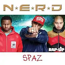 "Spaz" is a song by American funk rock and hip hop group N.E.R.D released as the second single from their third studio album Seeing Sounds. The song peaked at number six on the U.S. Billboard Bubbling Under Hot 100 Singles chart upon release in 2008. The group performed the song at the 2008 BET Hip Hop Awards, and were joined on stage by fellow American rappers Lil Wayne, Busta Rhymes, T-Pain, Swizz Beatz and Common (who had performed "Universal Mind Control" with Pharrell before the song).