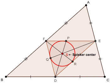 - The Spieker center of triangle △ABC is the incenter of the medial triangle of △ABC.