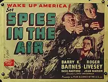 Spies of the Air (also known as Spies in the Air and The Fifth Column) is a 1939 British adventure film directed by David MacDonald and based on the play Official Secret by Jeffrey Dell. The film stars Barry K. Barnes, Roger Livesey, Basil Radford, Edward Ashley and Felix Aylmer. Spies of the Air involves espionage in the period just before the outbreak of war in Europe that spawned a number of similar propaganda films linking aeronautics and spies. Films in both Great Britain and the United States centred on "... spies and fifth columnists (as) the staple diet of films made during the first year of the war."[3][Note 2]
