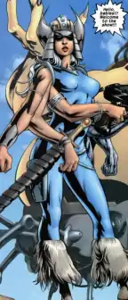 In the past, Spiral found herself stranded on Earth by Mojo for failing to kill Longshot and Rita. At some unknown point, Spiral encountered Val Cooper and was recruited into Freedom Force, a revamped version of the second Brotherhood of Mutants. Despite being utterly insane and more blood-thirsty than her new teammates, Spiral quickly became a valuable member of the team, singlehandedly defeating the X-Men on several occasions as well as kidnapping the X-Man Rachel Summers for Mojo.[10] She was also instrumental in Freedom Force's victory over the Avengers and the West Coast Avengers when sent by the U.S. government to arrest the heroes. Her magical powers temporarily robbed Captain Marvel of her energy powers and she also defeated Iron Man, removing two of the most powerful Avengers from the battle.[11]