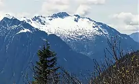 Spire Mountain is a 6,213-foot (1,894-metre) Cascade Range mountain summit located in Snohomish County, Washington.[5] It is set 7 miles (11 km) northeast of the town of Index, and 4 miles (6.4 km) north-northeast of Gunn Peak, its nearest higher neighbor. This mountain is situated in the Wild Sky Wilderness, on land managed by Mount Baker-Snoqualmie National Forest. Precipitation runoff from the mountain drains into tributaries of the Skykomish River. The first ascent of the highest Northwest Spire was made in 1934 by Dwight Dean and Kenneth Chapman. The first ascent of the Central Spire (6,200-ft) was made in 1938 by Karl Boyer, Lyman Boyer, and David Lind.[3] The Southeast Spire is estimated as 6,185 feet in elevation.[3]