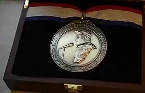 The Spirit of Hope Award was established in 1997 under the Clinton administration.[1][2] It was first granted to entertainer Bob Hope by the United States Congress, and is awarded in his honor.[3] The basis for the award was to recognize Hope's commitment to entertaining military service members over many decades, both within and outside of combat zones.