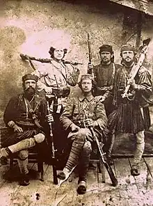 Spiro Bellkameni (1885-1912) was an Albanian kachak, revolutionary and activist of the Albanian National Awakening. He led one of the most important bands during the Albanian revolts of the 1900-1910s.[1] Bellkameni's band operated around south-eastern Albania and worked closely with other Albanian revolutionary groups in the region, particularly that of Sali Butka's.