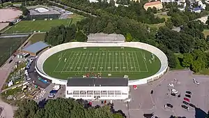Aerial view of the Helsinki Velodrome, an American football stadium in Helsinki, Finland
