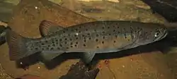 | Spotted galaxias. The characteristic base colouration and black edges to the fins are not particularly noticeable in this photo | |