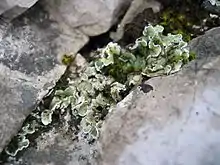 Squamarina is a genus of lichens in the family Stereocaulaceae,[1] although it has recently been suggested that it may belong in the family Ramalinaceae.[2] They form patches of radiating lobes or overlapping scales, with a well-developed upper cortex and no lower cortex.[3] They grow on calcareous soil and rocks.[3] Squamarina lentigera can be used to make a yellow dye.[4]