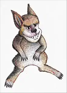 It is said to be small, hairy, tawny, similar to a squirrel without a tail, but with an anthropomorphic face.