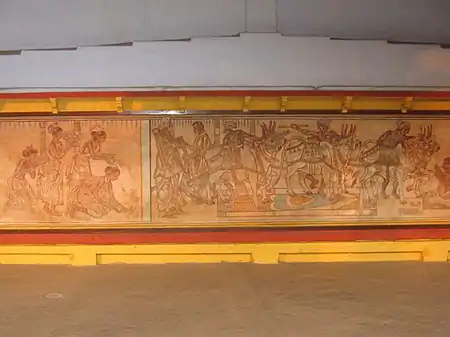 The second but contiguous campus of Visva Bharati was subsequently located around the same place in 1923 and it came to be known as Sriniketan. Silpa Bhavana at Santiniketan had already started training in handicrafts. Sriniketan took over the work with the objective bringing back life in its completeness to the villages and help people to solve their own problems instead of solution being imposed on them from outside. An emphasis was laid on a scientific study of the village problem before a solution was attempted.[5]