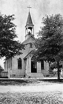 In the late 1880s, the Rt. Rev. Edwin G. Weed, third bishop of the Episcopal Diocese of Florida, found three families of Episcopalians when he visited DeFuniak Springs and from that nucleus St. Agatha's was born. The first baptism was in 1890 in a private home. Construction of the church building began in 1895. At Easter when the women of the mission wanted services in the unfinished church they asked the men of the church to read Morning Prayer. The men refused stating that the church had not yet been consecrated and no men in the parish had yet been licensed as lay readers to conduct services. The women took matters into their own hands. They decked the lath that was awaiting plaster with flowers and greenery from floor to ceiling. They proceeded to read Morning Prayer. This was long before women became eligible to be licensed as lay readers. The church has the only pipe organ in the county. It was built by a parishioner and completed in 1990.[2]