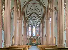 St. Agnes is a neogothic Catholic church in Neustadt-Nord, Cologne, Germany. It was consecrated in 1902 and is the second-largest church in Cologne after the Cologne cathedral. St. Agnes is 80 metres (260 ft) long, 40 metres (130 ft) wide and occupies an area of 2,155 square metres (23,200 sq ft). The tower has a height of 61 metres (200 ft). The church is named after Agnes of Rome.