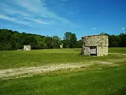 St. Albans Farms Stone Barn, also known as the Stone Dairy Barn, is a historic barn located at St. Albans, Franklin County, Missouri. It was built about 1918, and is a large U-shaped one-story frame building with limestone-faced walls and a steep gable roof. It features round corner towers that are topped with conical roofs. Associated with the barn are a large round tile silo off of each back corner.[2]:6 Much of the barn has been demolished.