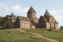The church of St Astvatzatzin (Mother of God) in Armenia is a series of small, free-standing cruciform churches and was built in 1866 and for which quite a large number of decorative parts from the already ruined cathedral was used. The entire area contains a rich presence of historical evidence, among others the remnants of building, which according to T. Tormanian are the ruins of noble residence, probably belonging to the house of Kamsarakan.