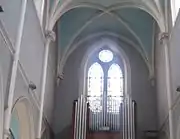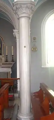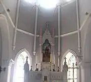 Columns are the main structural elements of the church. These columns are creating form of the main corridor and it carries the arch roof. Building has got many colons, besides the columns view that architectural element. These columns only complete the roof composition. It's possible to see these types of columns behind the altar, which is located at apse. The elevation of the church has high quality. Also, it is easy to say that although interior needed restoration, the elevation does not need anything. Especially, the brick and concrete are important considering the age of church. The only vibrant colors used in the window that are called as stained glass in architecture.