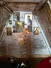 The three foundation stones of the 3.5 by 3.5 m building were laid on 9 December 2001 by deacon Lyubomir Bratoev,[1] who participated in the tenth Antarctic expedition the next year.[2]