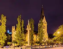 On the side of the church there is a column erected in 1682 to commemorate the Habsburg victory against the Ottoman Turks in the Battle of Saint Gotthard.