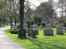 The first burial in the churchyard was in 1806 of the seven-year-old grandson of Cornelius van Nostrand who had come to York Mills as a Loyalist in 1797.[12] Many of the early settlers of the area and participants in the Upper Canada Rebellion are buried in the church cemetery. Notable internments include the Rt Rev. Archbishop Derwyn Owen, Primate of All Canada,[14] Lionel Conacher,[15] Walter Seymour Allward and a memorial to the van Nostrand family.