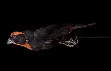 It was previously considered conspecific with the Puerto Rican bullfinch (Melopyrrha portoricensis), from which it could be distinguished by its larger size, glossier feathers, and more extensive breast patch.[2][3]