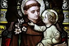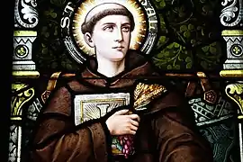 The church's structure supports four domes spanning the length of the basilica. All the domes are compound design with the pendentives, following Roman architecture, transferring the weight of the roof to the pillars. The dome over the intercept point of the crossover, the nave center aisle and the apse, is topped with stained glass and features a lantern above the dome to emit light into the nave and sanctuary. The dome located over the altar is topped with a cupola designed to provide light to the altar. The two bell towers are topped with onion shaped domes, typical of the churches of Bavaria and Austria, where Novatus Benzing, the pastor at the time, and Leonard Darscheid, the architectural consultant, both originated. The towers house four bells which ring daily. The large upper windows depict scenes from the life of the Blessed Virgin Mary, while the lower nave and transept windows depict images of popular saints of the Franciscan Order and of the heritage of the cultures represented in the community at the time (German, Spanish, Irish).