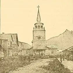 St. Michael's Cathedral (Russian: Собор Архангела Михаила Sobor Arkhangela Mikhaila, also known as the Cathedral of St. Michael the Archangel) is a cathedral of the Orthodox Church in America Diocese of Alaska, at Lincoln and Maksoutoff Streets in Sitka, Alaska. The earliest Orthodox cathedral in the New World, it was built in the nineteenth century, when Alaska was under the control of Russia, though this structure burned down in 1966.[3] After 1872, the cathedral came under the control of the Diocese of Alaska. It had been a National Historic Landmark since 1962, notable as an important legacy of Russian influence in North America and Southeast Alaska in particular.[4][5]