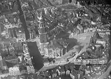 The church was reconstructed twice in the 20th century: after catching fire in 1906 during construction work and after the bombings of 1944 and 1945. After the 1906 fire, the photos of Wilhelm Weimar were used to help recreate the church.[3] Since 1983, renovation is ongoing: first the spire and then the roof.