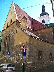 St. Michael's Church in Jircháře (Czech: Kostel svatého Michala v Jirchářích), Prague - New Town near the National Theatre, specifically the New Town street, which is called v Jirchářích (in Jirchaře - the nickname of the church is called after this part of Prague). It is the seat of Czech, Slovak and English congregation of the Evangelical Church of the Augsburg Confession in the Czech Republic. Its architectural style is not uniform due to alterations in different periods and styles. It is protected as a cultural monument of the Czech Republic.