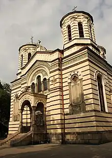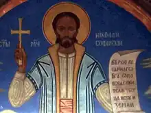 St. Nicholas of Sofia the New (Bulgarian: Свети Николай Софийски Нови) is a Christian saint who lived in the 16th century in Sofia, Bulgaria and is considered a martyr in the Bulgarian Orthodox Church. He is referred to as a New Martyr to signify that he died for his faith in the post-medieval period as opposed to the early martyrs who died primarily under the Romans. At the time of Nicholas' death, Bulgaria was under the rule of the Ottoman Empire, which compelled some locals to convert to Islam. On May 17, 1555, some local authorities brought Nicholas before a judge or qadi (Turkish kadı).[1] Although he was freed by the qadi, Nicholas was attacked by a mob of townspeople and killed. In 1900, a large church named St. Nicholas of Sofia (Свети Николай Софийски) was constructed on Pirotska Street (at the corner of Opalchenska Street) in downtown Sofia. [2]