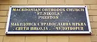 The Community of St.Nikola, a church organisation was founded (1974) in Preston by the Macedonian community.[4] The St. Nikola community had arisen from the Cyril and Metodius Cultural Association.[5] The initiative committee of the organisation was composed of Gorgi Pisevski, its president, along with Mile Panov, Gorgi Petro and Nikola Vasilevski.[3] The consecration of St. Nikola church took place during 1978 by Archbishop Dositej and the Metropolitan Kiril.[3]