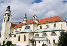 The original church at the site was presumably built near the city walls already at the turn of the 9th century on the order of Paulinus II, the Patriarch of Aquilea.[1] It was the seat of the Primitive Parish of Ljubljana. The church was encircled by a cemetery that was the main town cemetery until 1779, when it was abandoned.[2]