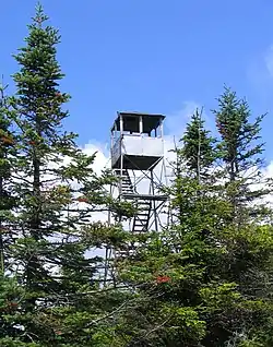 The St. Regis Mountain Fire Observation Station is a historic fire observation station located on Saint Regis Mountain at Santa Clara in Franklin County, New York. The station and contributing resources include a 35-foot-tall (11 m), steel frame lookout tower erected in 1918, the site of the former observer's cabin, and 9/10 of a mile foot trail between the cabin site and summit. The tower is a prefabricated structure built by the Aermotor Corporation and provided a front line of defense in preserving the Adirondack Forest Preserve from the hazards of forest fires.[2]