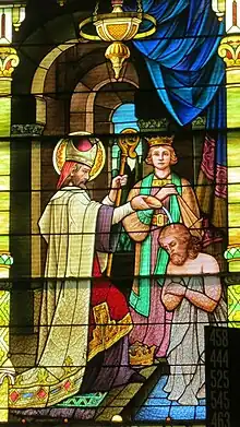 A window from the church depicts Saint Remy baptizing Clovis I.
