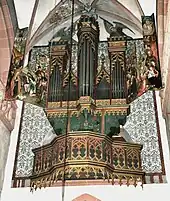 The organ is one of the oldest playable organs,[1] the oldest in Hesse.[8] The instrument was built around 1500 by an anonymous organ builder, first probably with one manual. Repairs are documented for 1686 and 1692. Elias Salvianer restored the organ in 1710. His contract documents the disposition of the organ for the first time. A pedal was added in 1722. From 1790 at the latest, the instrument was not playable.