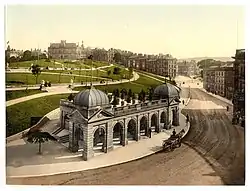 St Ann's Well was declared to be public property by the 1772 Buxton Enclosure Act, with an obligation for it to be maintained in good condition. Each Easter week the parish Vestry appointed a poor woman as the 'Well Woman' to take care of the well and to help those taking the water. Martha Norton performed this role for 15 years between 1775 and 1820. The position was unpaid and depended on tips, until paid attendants were appointed from 1875. Architect John Carr designed the 1783 drinking well to comply with the Enclosure Act. The Georgian spa town blossomed with the building of the Crescent in the 1780s opposite St Ann's Well. It was commissioned by the 5th Duke of Devonshire and it was also designed by John Carr.[15][16] Buxton's development as a Victorian spa town centered on the reputed healing powers of its natural mineral baths. The Buxton Bath Charity and numerous independent establishments offered hydropathic treatments using the thermal spring waters. Dr William Henry Robertson wrote the definitive guide to the Buxton waters, with its analysis of their medicinal properties.[15]