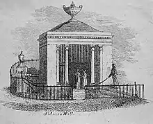 In 1700 the well consisted of a stone basin with an ancient brick wall around it, a yard square inside and a yard high. Sir Thomas Delves built an arch over the spring of St Ann's Well in 1709, in thanks for his successful recuperation and in order to protect the quality of the water. The new structure provided seating on all sides for visitors. When the earlier wall around the well was demolished to make way for the arch, several Roman leaden cisterns and various utensils were discovered around the foundations.[14]
