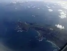 Saint Anne is located about 10 miles (15 km) off the coast of Auderville in the Manche department of the Normandy region of north-western France. As of 2010, it has an estimated population of 2,000, compared to an estimated 2,400 who actually live on the island; they have traditional names such as vaches (French for cows) and lapins (French for rabbits, given after the rabbits found in the island).[1][2] The town dominates much of the island, almost extending up to the Braye Harbour to its north, which is the main port of entry to the island and the town. It is located on a high ground at the centre of the island on the northwest direction.