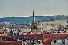 St Bartholomew's Church (German: Bartholomäuskirche) in the historical city centre of Erfurt in Thuringia, Germany, was a Gothic church building at the western Anger square. Today, only its tower, the Bartholomäusturm (Bartholomew Tower), remains; since 1979, it has been housing a carillon.