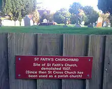 St Faith's Church was the parish church of St Cross, a village just south of Winchester, Hampshire, England. It was situated on the northern side of what is now Kingsgate Road at its junction with what is now St Cross Road. The church's graveyard is still there today. The church was demolished in 1507,[1] and St Cross Church, part of the Hospital of St Cross, became the parish church.